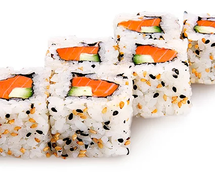 Лосось, авокадо, сир Філадельфія, огірок, тобіко, червона ікра.