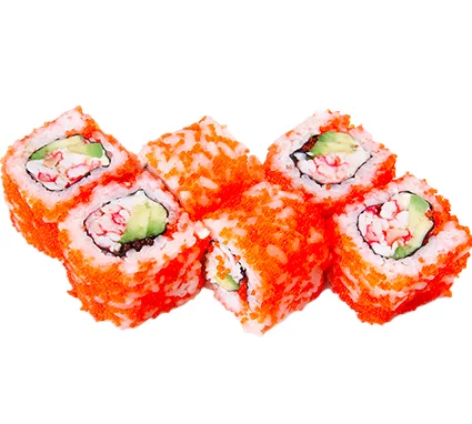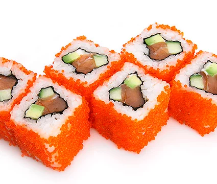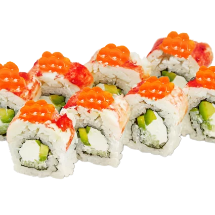 М'ясо краба, сир філадельфія, огірок, авокадо, лососева ікра.