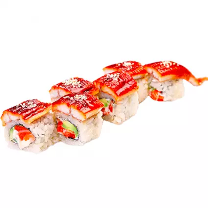 Філе вугра, лосось, сир Філадельфія, авокадо, кунжут, соус Унаґі.